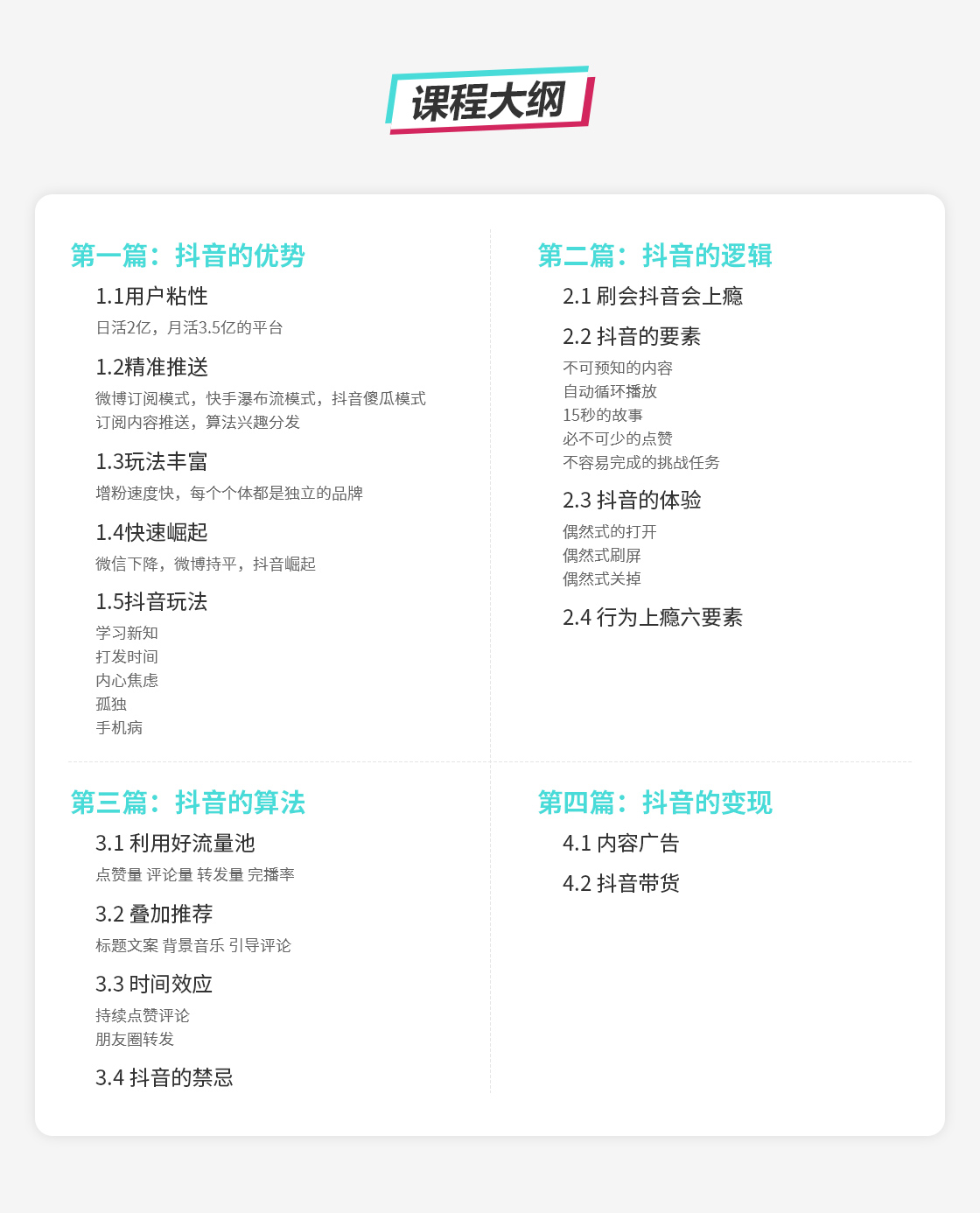 第三讲:抖音的算法和变现手段下篇