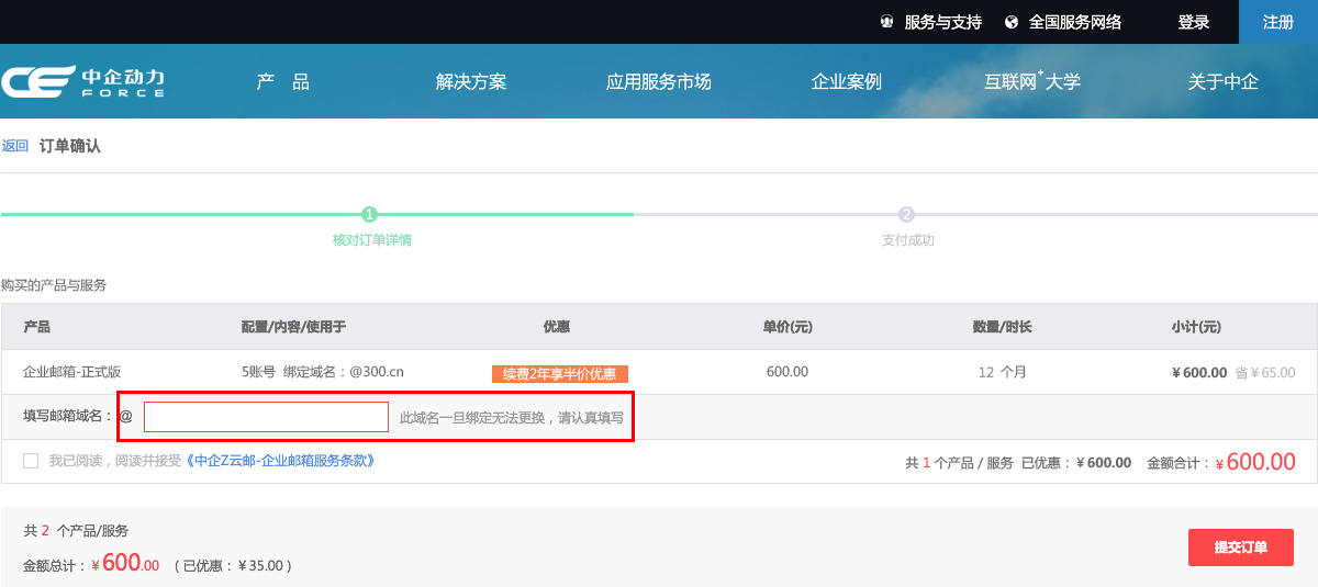 3) 您可以选择“余额支付”+“支付宝”组合支付(默认将账户余额全部使用,差额部分从支付宝完成支付;)支付成功后,您的邮箱即开通使用。
