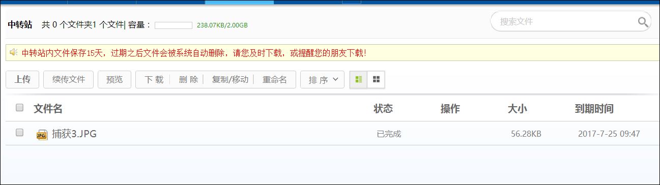 您可以登录web邮箱页面,在【中转站】中对您的文件进行管理。