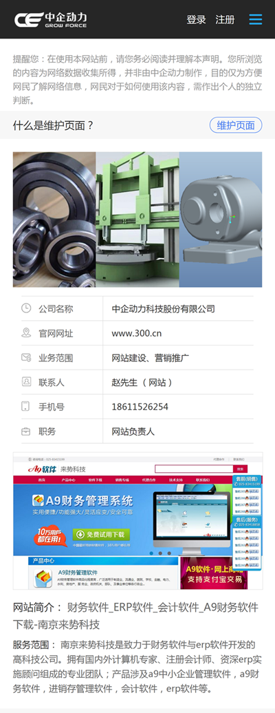 通过维护页面功能,可以将您提供的电话、公司名称、官网地址以及您希望展示的图片,展示在页面当中,如图: