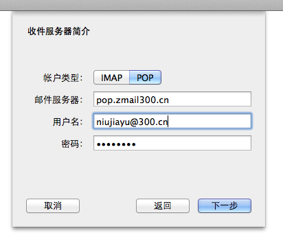 如果帐户类型选择: POP3