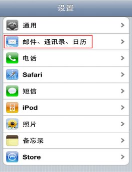 第二步,点击【邮件、通讯录、日历】选项.