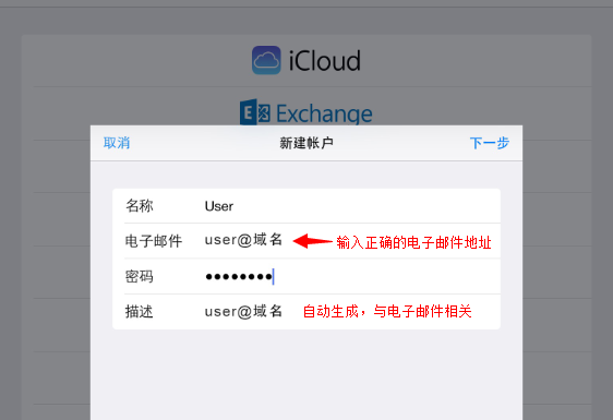b)用户名输入完整的电子邮件地址;