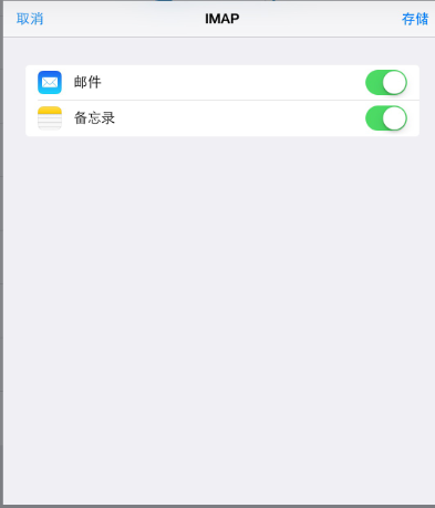 当设置为IMAP类型的帐户时: