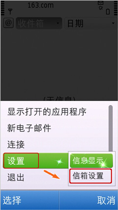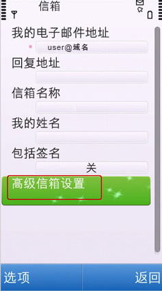第四步,邮箱已经添加,这时需要点击左下角【选项】——>【设置】——>【信箱设置】,来设置邮箱的收/发件服务器;