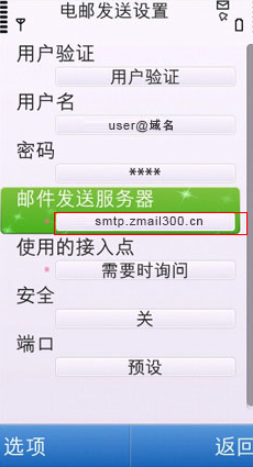 第十步,发件服务器设置如下图,设置完点击【返回】。