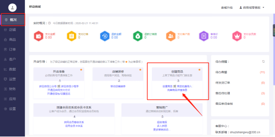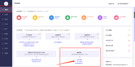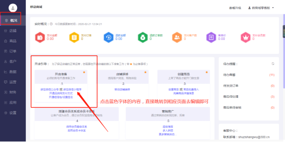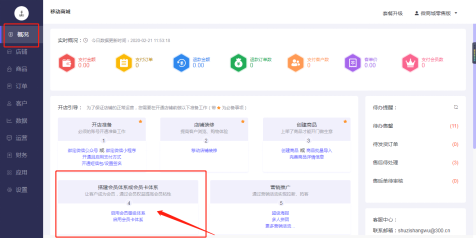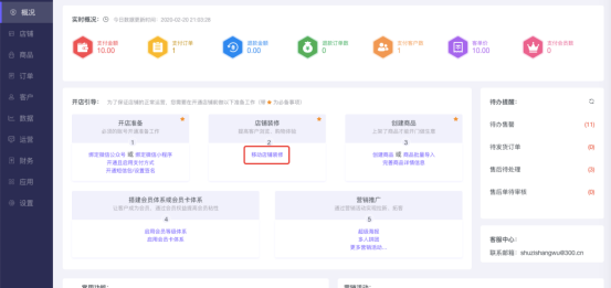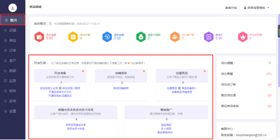 移动商城电脑端后台-概况-开店引导: