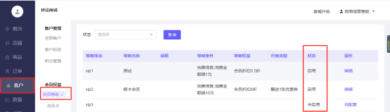 启用会员等级体系、启用会员卡体系: