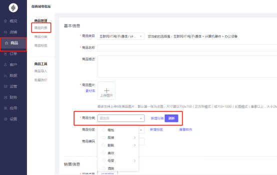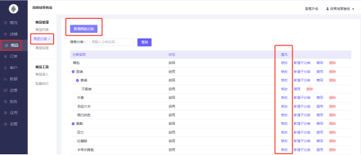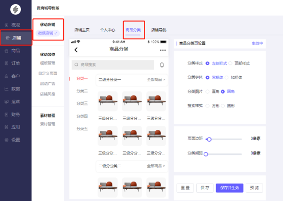 微商城新零售后台—店铺—移动店铺—微信店铺—商品分类