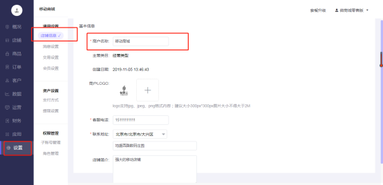 操作路径: 微商城电脑端后台-设置-店铺信息-商户名称,修改后点击保存:
