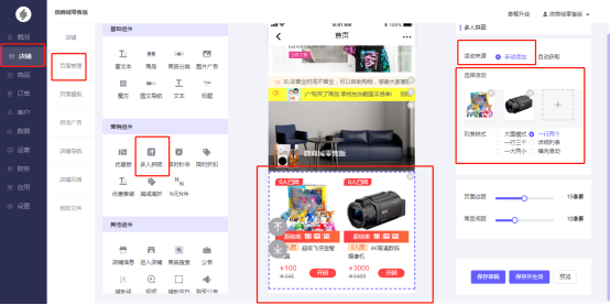 手动选择后台创建好的拼团活动。您可以根据自己的需求场景来设置列表样式等;不同的勾选有不同的展示,在勾选之后会立马出现在效果图中,您可以查看预览效果。