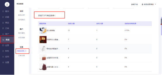 查看路径:微商城电脑端后台-数据–商品交易–热销TOP5商品榜单: