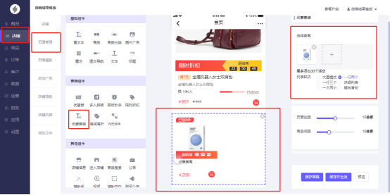 微商城电脑端后台-店铺–页面管理–新建页面或编辑页面-添加“优惠套装”组件: