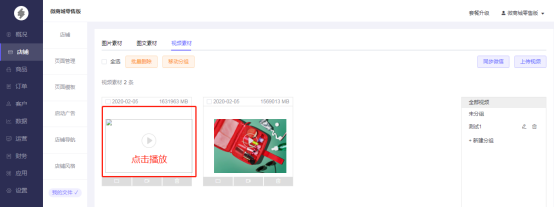 微商城电脑端后台-店铺–我的文件–视频素材,选择需要下载的视频,点击【播放