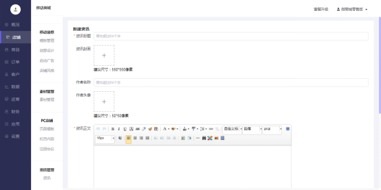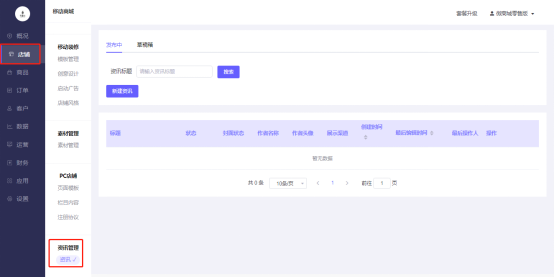 操作路径:店铺-资讯管理-资讯