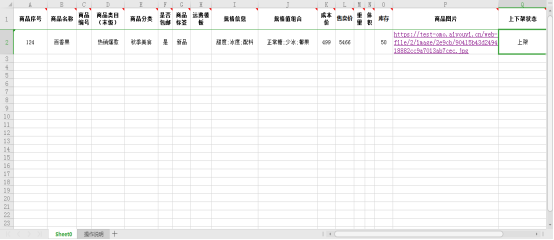 2.在【商品导入模板】按规则添加商品数据信息;