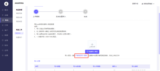 步骤一:下载商品导入模板