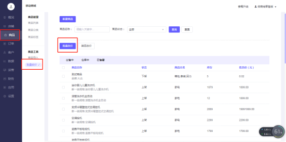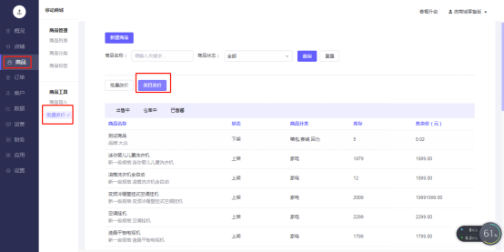 移动商城电脑端后台-商品–商品工具-批量改价