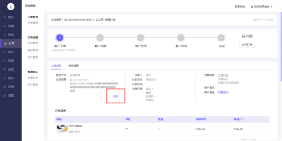 1.只有待付款或待发货的订单支持修改