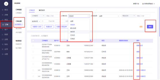 登录移动商城电脑端后台 - 订单 – 订单处理- 发货管理- 订单状态:待付款 \待发货– 查询 – 查看-修改收货地址