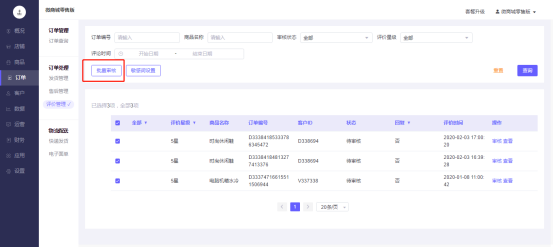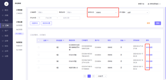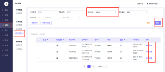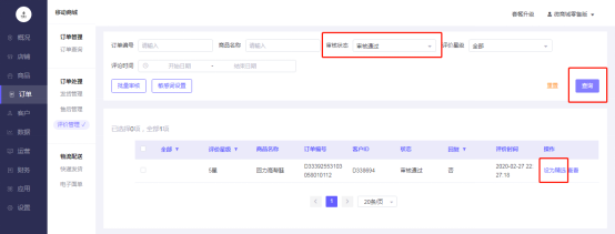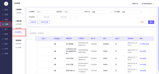 移动商城电脑端后台-订单-订单处理 - 评价管理