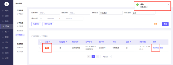 (2)如果某条评价已经设为精选了,则其对应的操作按钮为“取消精选”。