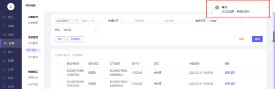 移动商城电脑端后台-订单-订单处理-售后管理