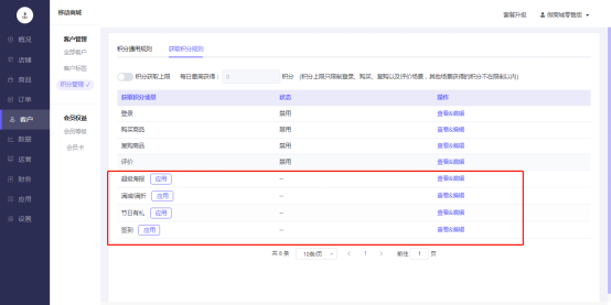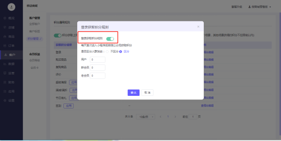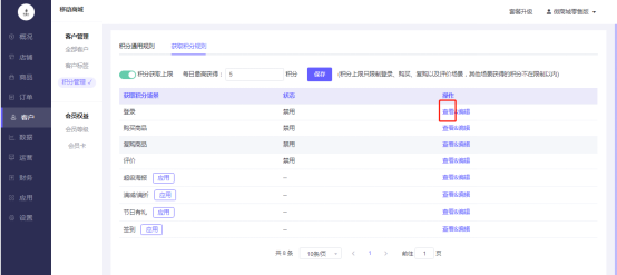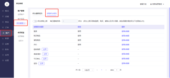 移动商城电脑端后台-客户-客户管理-积分管理-获取积分规则