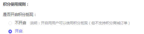 不开启: 用户不可以使用积分抵现