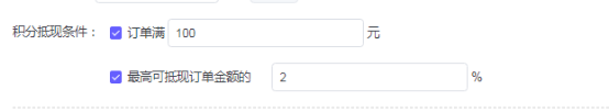 抵现比例:x积分x元 如:100积分抵现1元
