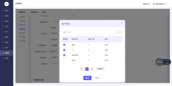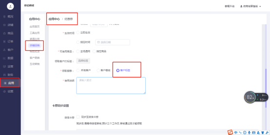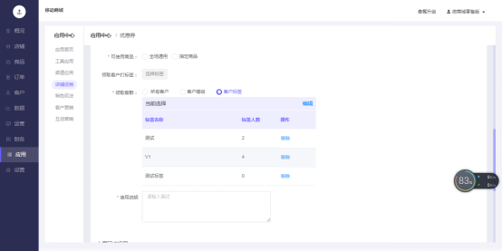 应用-店铺促销-优惠券-添加活动-领取客群:客户标签