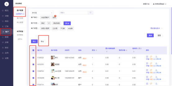 移动商城电脑端后台-客户-客户管理-全部客户