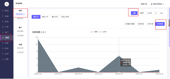 4. 分析顾客的访问来源,看下哪些来源的引流效果好。例如,是公众号的流量更多,还是小程序的流量更多?