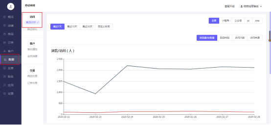 移动商城电脑端后台 - 数据 – 访问-客流分析