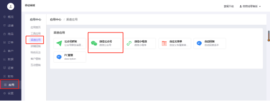 已认证的微信公众号(服务号)在开店时候进行绑定或者开店后到移动商城电脑端后台-应用-应用中心-渠道应用-微信公众号-进行绑定。