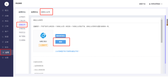 1. 微信公众号绑定店铺后,可自由解除绑定。