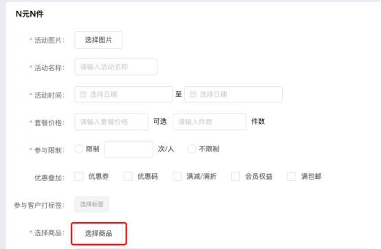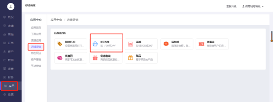 移动商城电脑端后台-应用-应用中心-店铺促销-N元N件