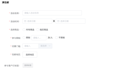 选择商品:所有商品参与满包邮或者指定商品参与满包邮