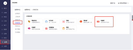 移动商城电脑端后台-应用-应用中心-店铺促销-优惠券