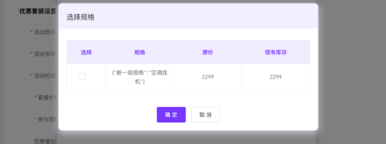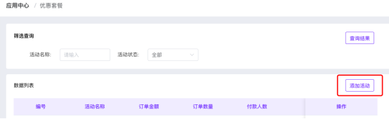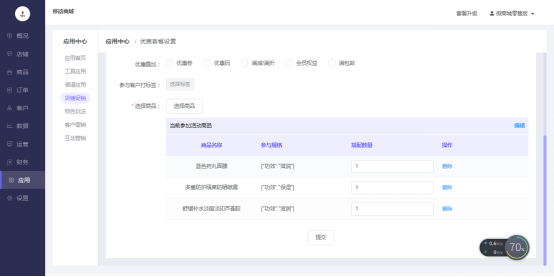 移动商城电脑端后台-应用-应用中心-店铺促销-优惠套装