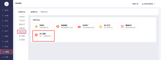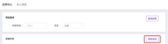 移动商城电脑端后台-应用-应用中心-特色玩法- 多人拼团