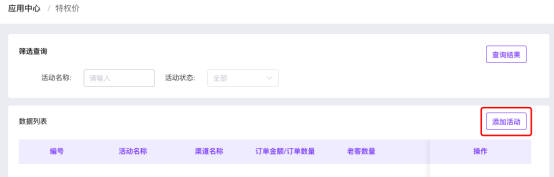 移动商城电脑端后台-应用-应用中心-特色玩法-特权价