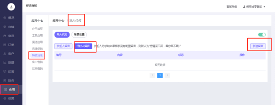 移动商城电脑端后台-应用-应用中心-特色玩法-找人代付