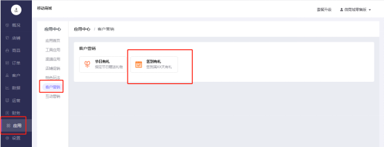 移动商城电脑端后台-应用-应用中心-客户营销-签到有礼