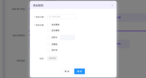 规则说明:您可以自定义签到规则并公示给用户 ;