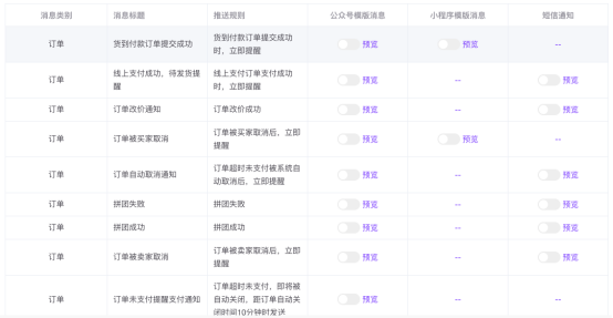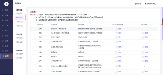 移动商城电脑端后台-设置-消息设置