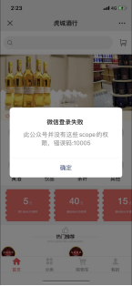 移动商城绑定后提示:此公众号并没有这些scope的权限,错误码:10005怎么操作?