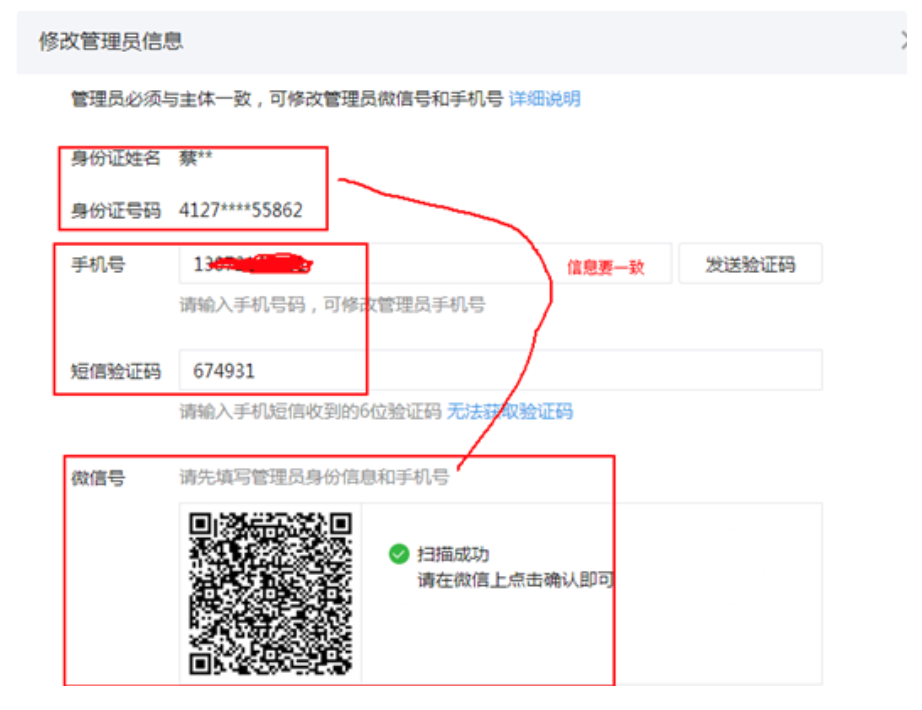 5、继续输入新管理员姓名、身份证号、并进行扫码确认身份。