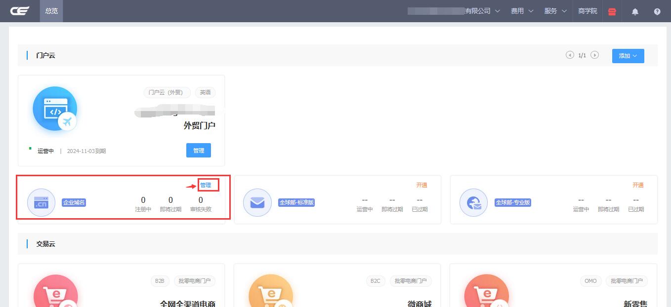 进入详细页面后,点击最后的管理—进入域名管理模板—查看域名证书