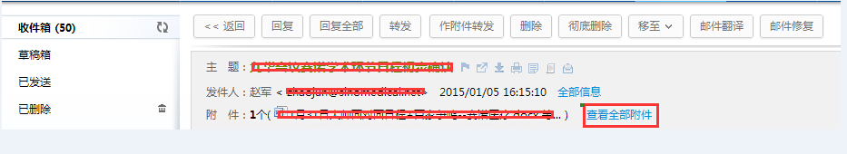 第一步:请打开需要预览附件的邮件,点击【查看全部附件】。